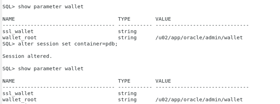 SQL> alter system set WALLET_ROOT="/u02/app/oracle/admin/wallet" scope=spfile sid='*';